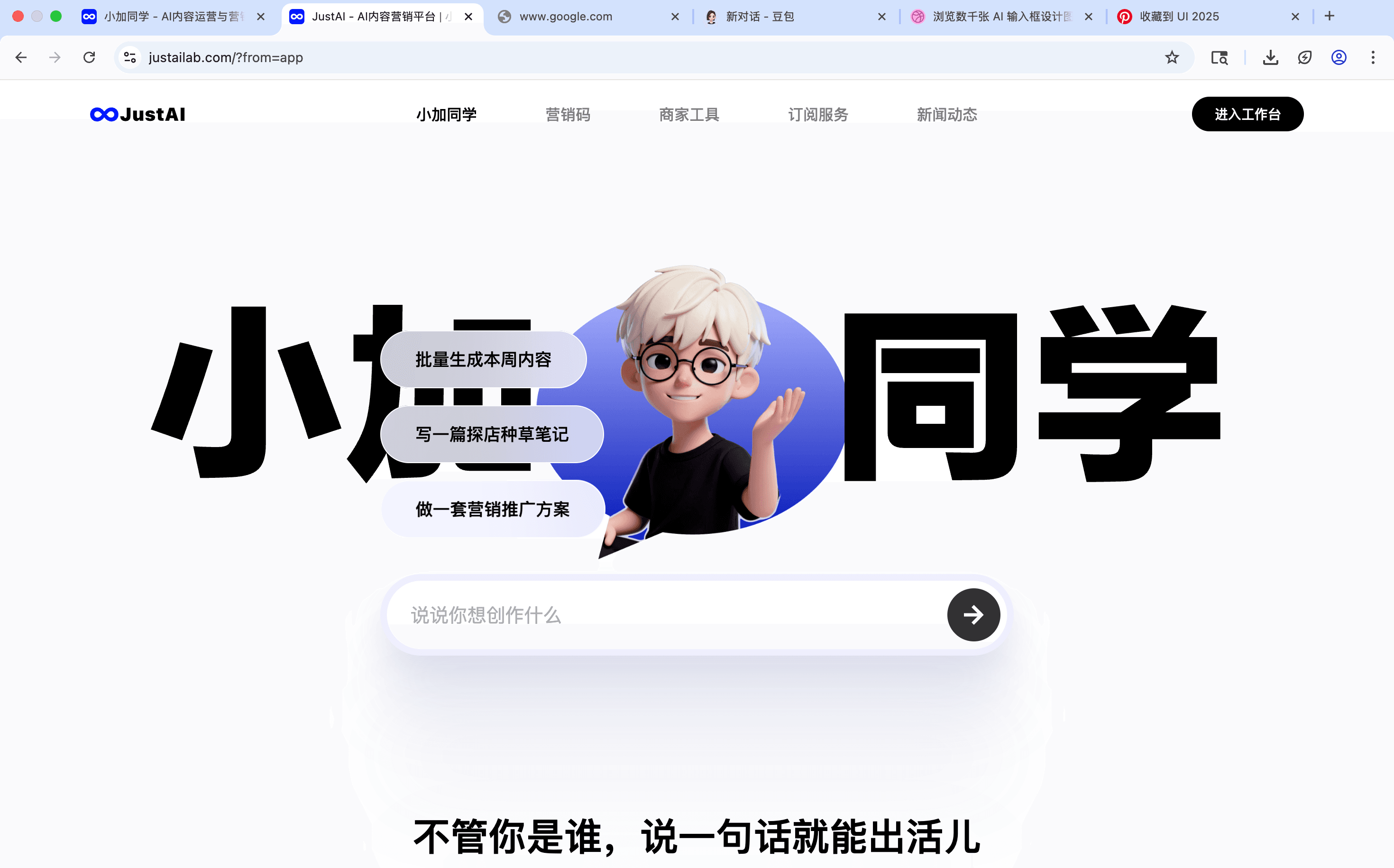 听得懂老板的需求,是其最大的商业价值。 搭载先进的意图识别引擎,用户无需学习结构化提示词,只需像和真实员工微信沟通一样,用日常大白话输入需求(例如:“我要办个夏日防晒的促销,帮我出个方案和几篇种草文”),Agent 就能精准拆解任务、补充缺失的业务上下文,并一次性交付高质量结果。